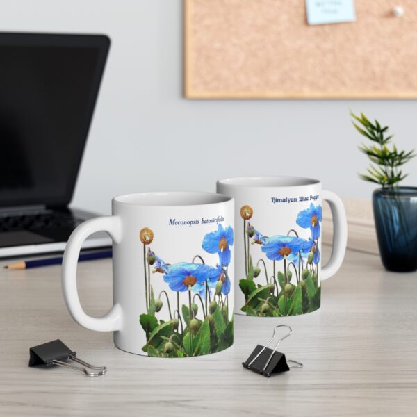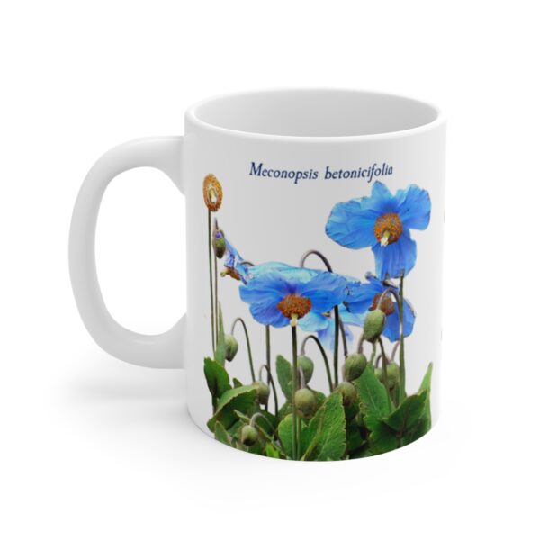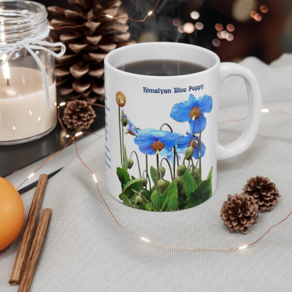 This beautiful coffee mug features Himalayan blue poppy flowers. Plus, the symbolic meanings of this special flower are written on the side. It also includes the traditional scientific and common names for the flower – a nod to those who appreciate the beauty and study of nature.