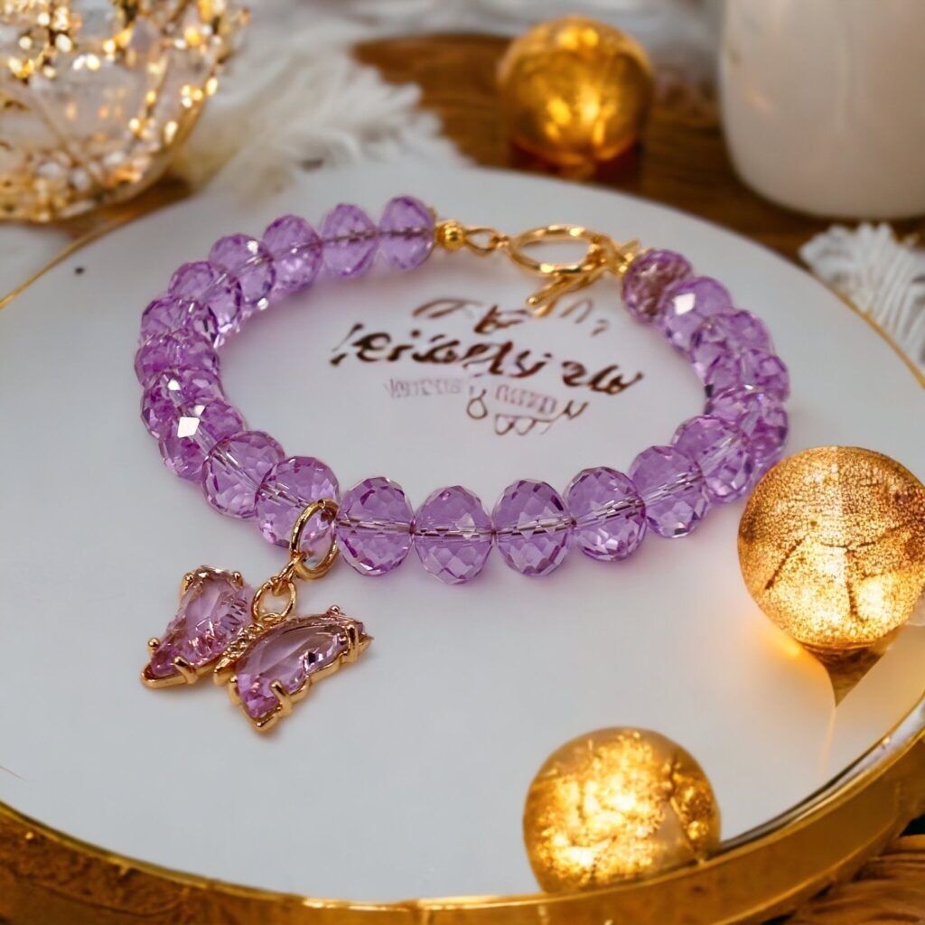 This crystal glass butterfly bracelet radiates positive energy. Just see it in the sunlight!