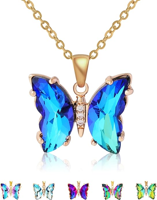Available in lots of fun colors, this sweet butterfly necklace has sparkles galore. At an affordable price point, it has happiness built in. Makes a perfect gift for any butterfly lovers in your life or yourself.